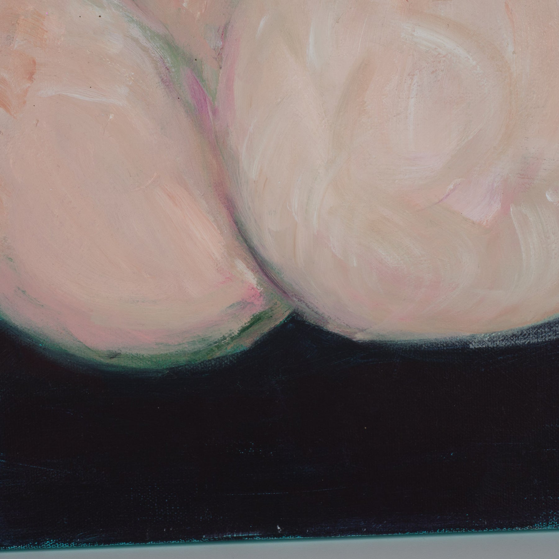 Dit sfeervolle schilderij toont de rugzijde van een naakte vrouw, weergegeven in prachtige zachte groen- en rozetinten. Het werk ademt rust, elegantie en verfijning, en weet met minimale middelen een sterke emotionele aanwezigheid op te roepen.