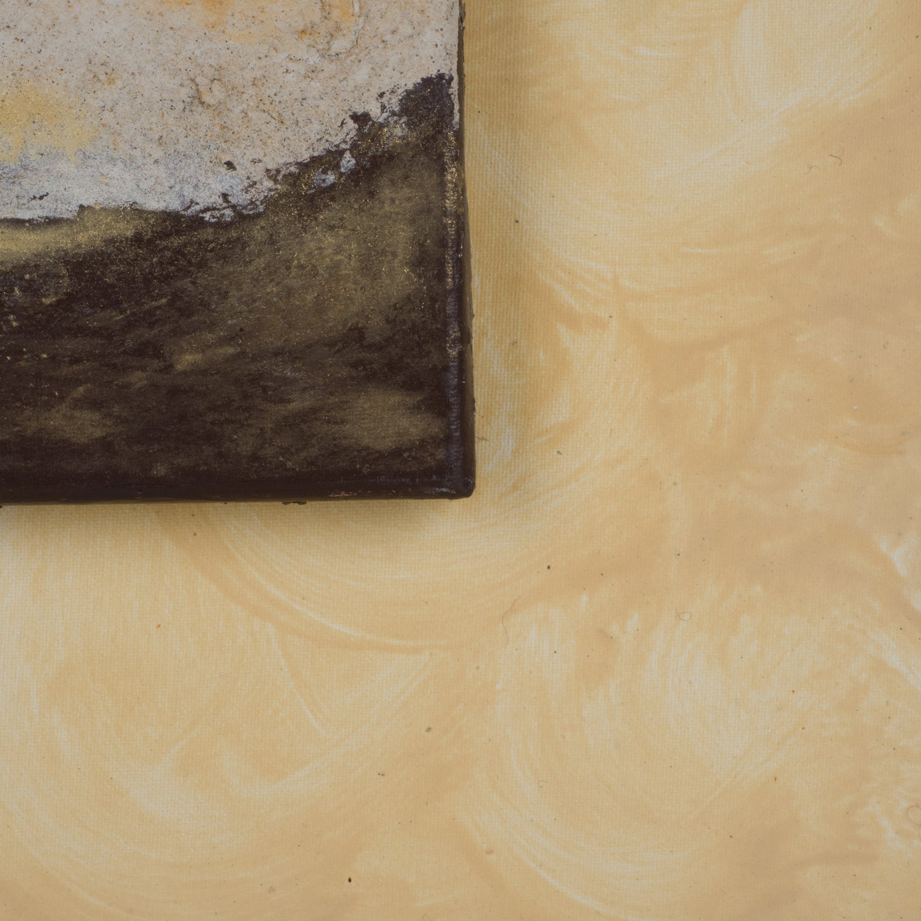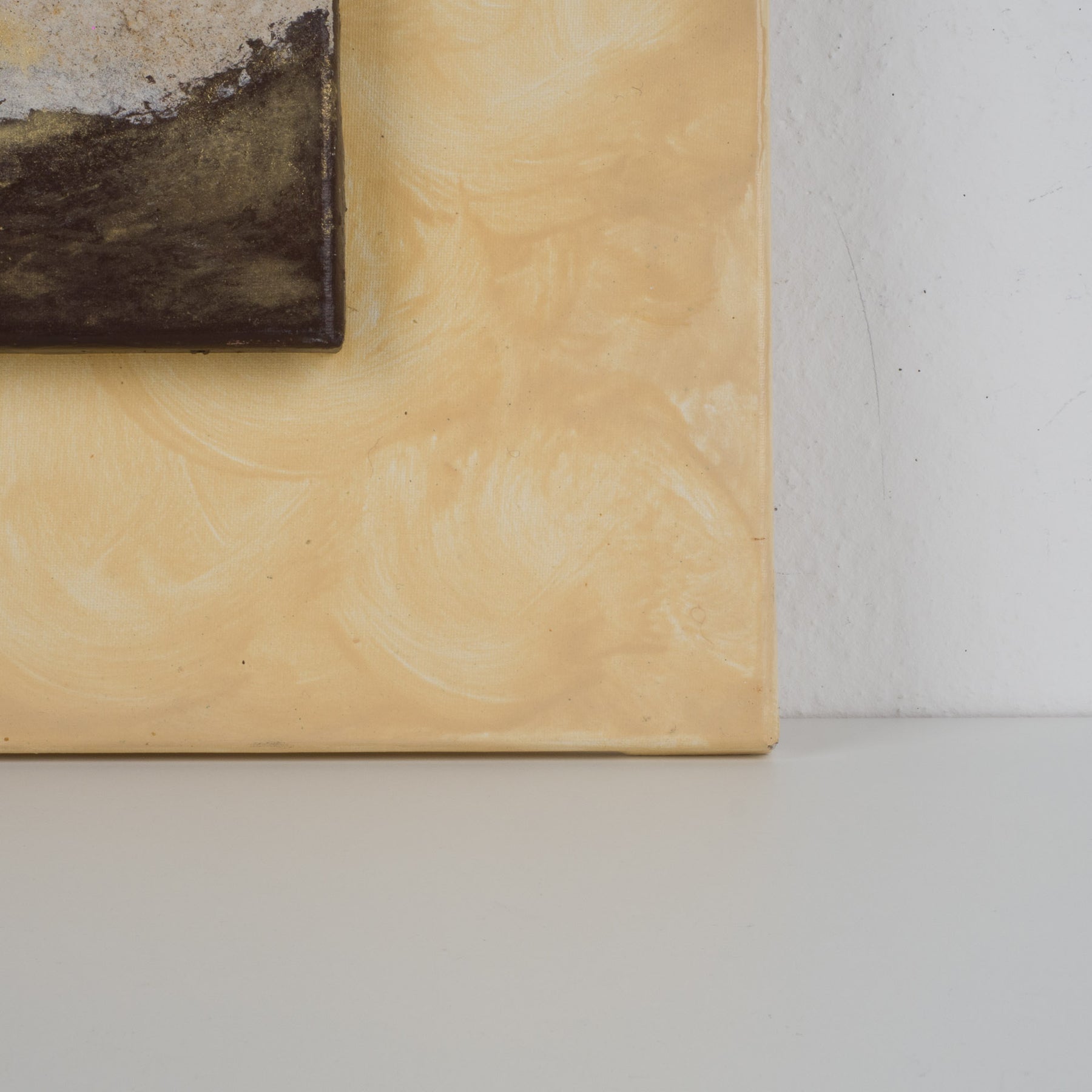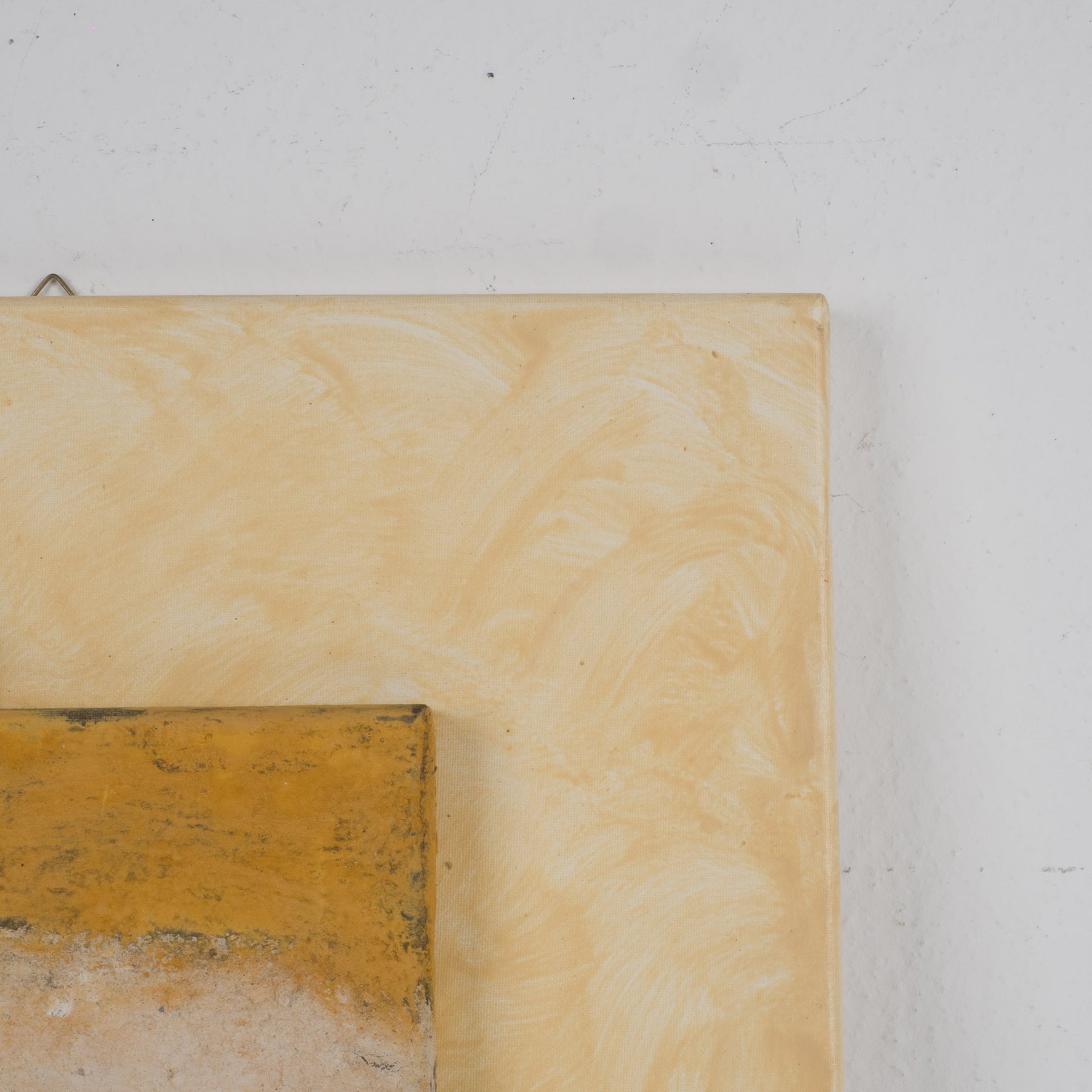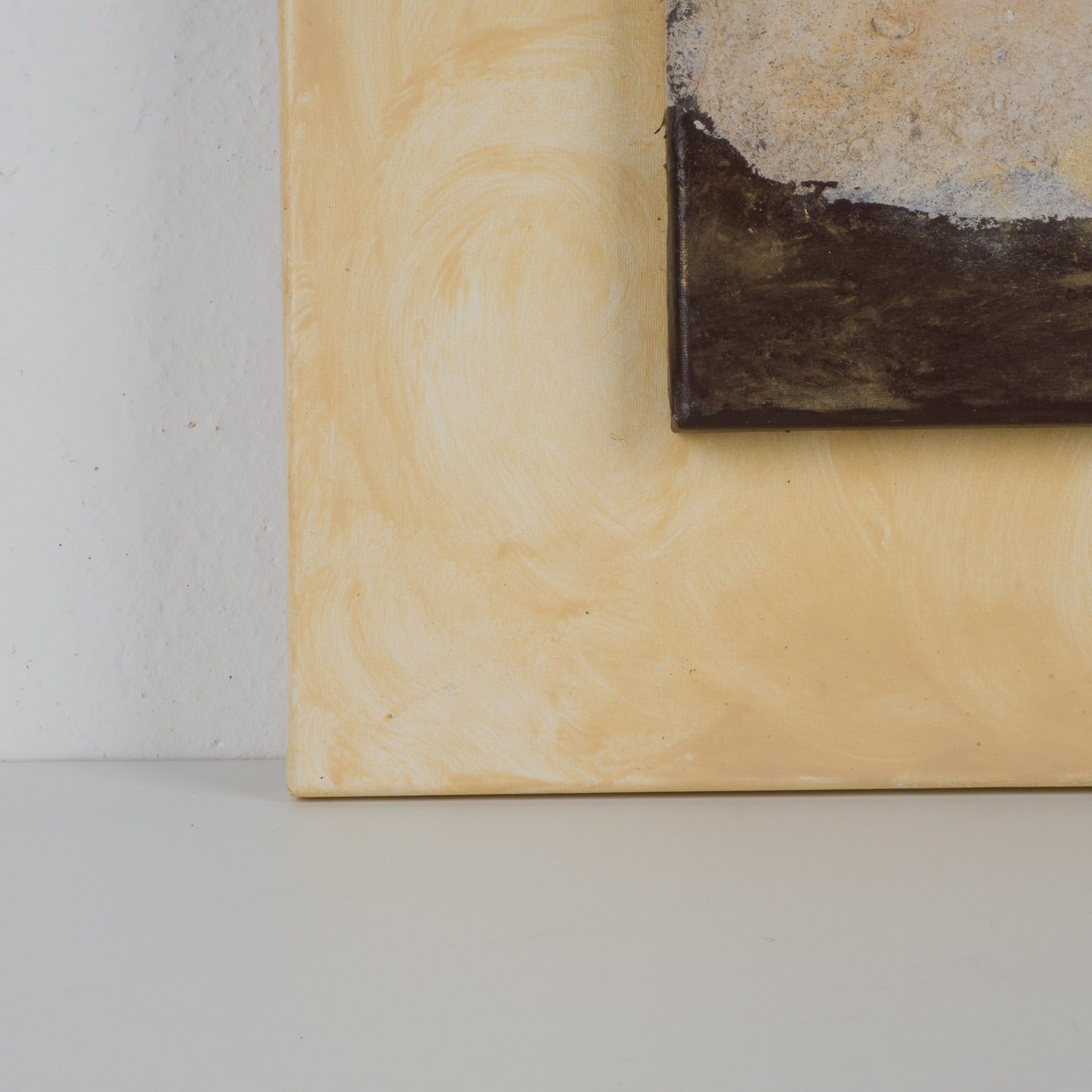 Dit bijzonder charmante kunstwerk combineert schilderkunst en sculptuur in één geheel. Het doek, uitgevoerd in prachtige gradaties van okergeel, creëert een warme en rustgevende achtergrond die meteen in het oog springt.