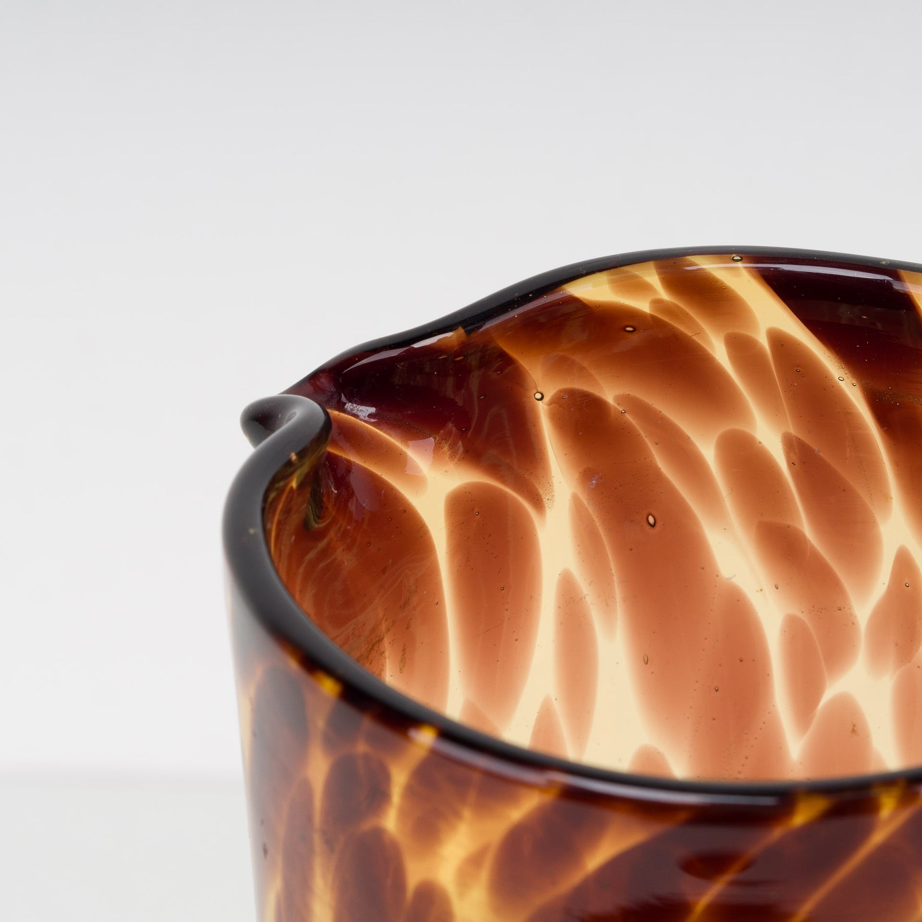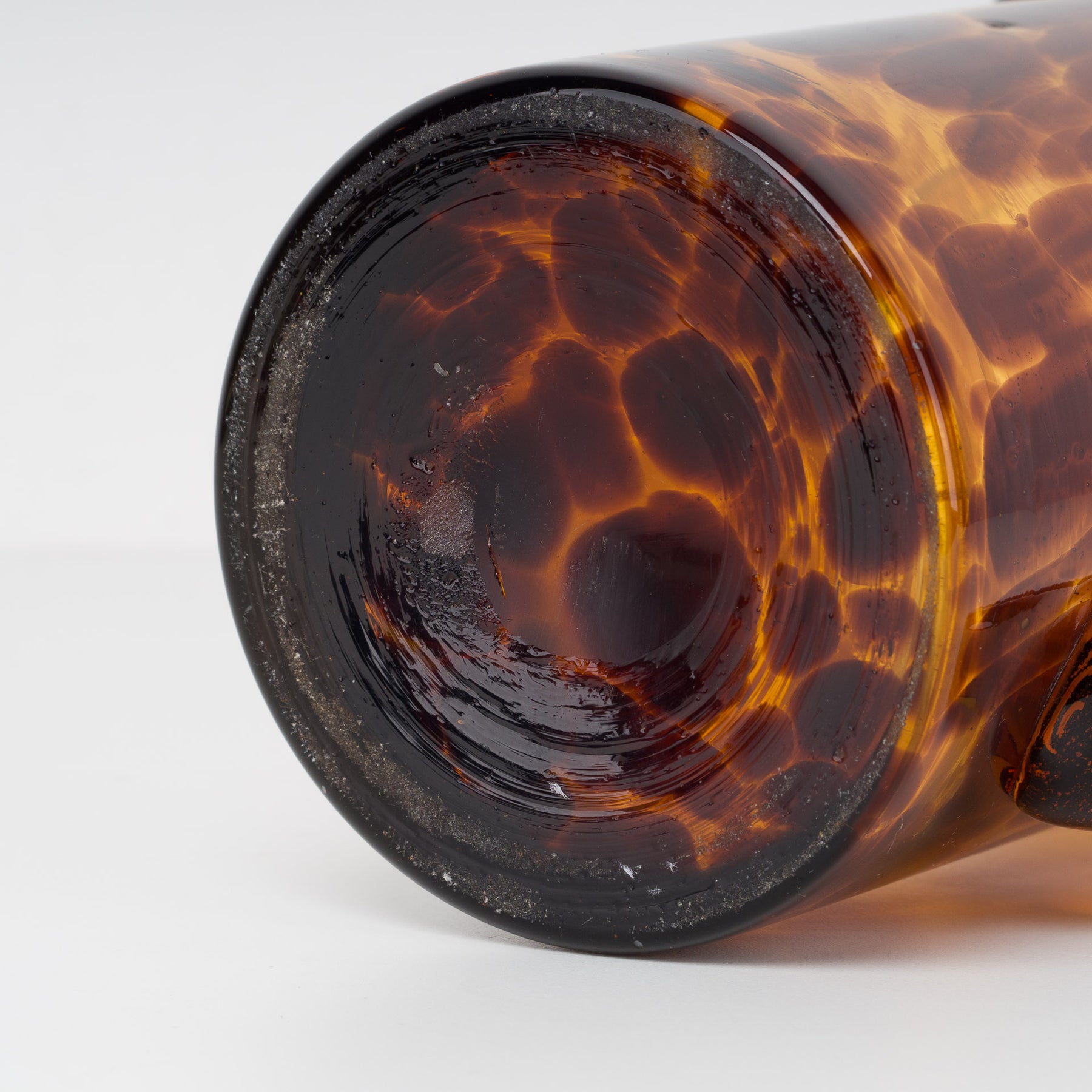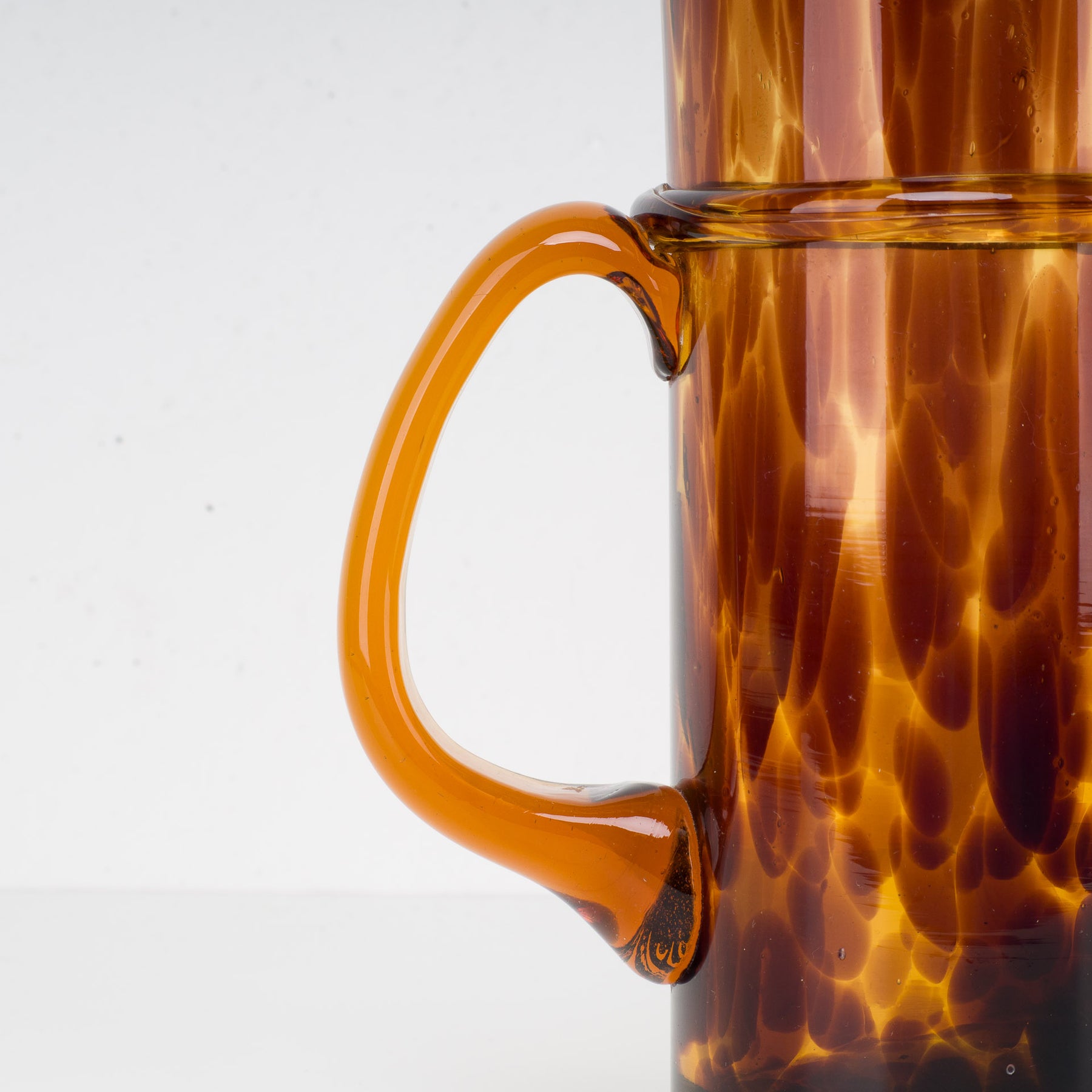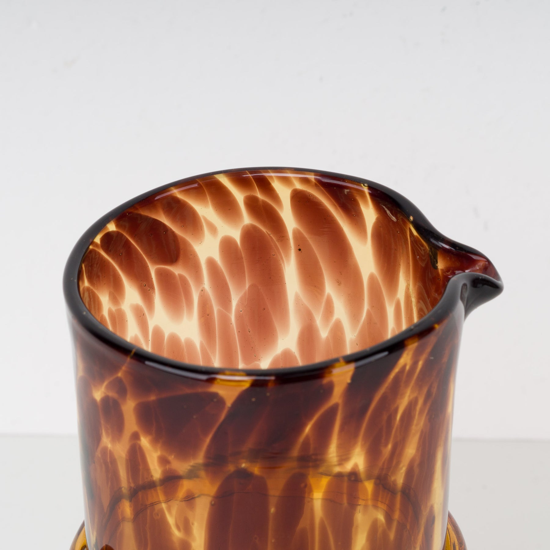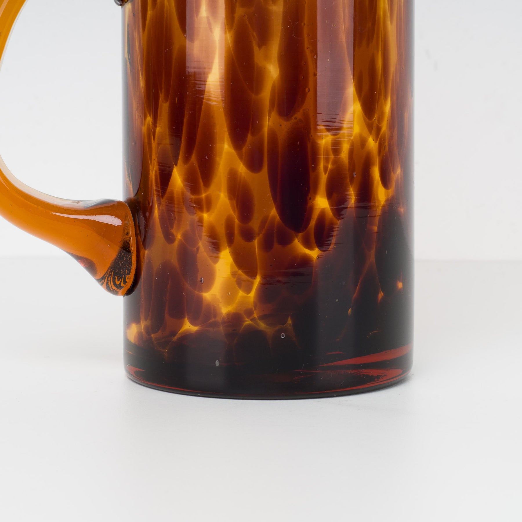Een stijlvolle en karaktervolle glazen schenkkan in een warm bruin schildpadmotief. De subtiele schakeringen in het glas geven dit stuk een elegante, bijna vintage uitstraling die perfect past in zowel een klassiek als een eigentijds interieur.