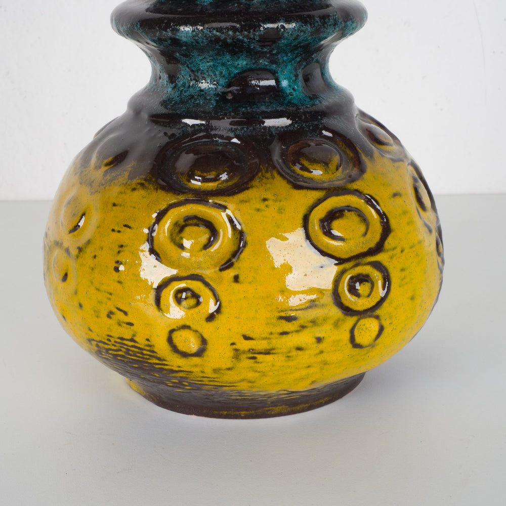 Zeldzame vintage West-Germany vaas Carstens Keramik – oker en groen met bollen