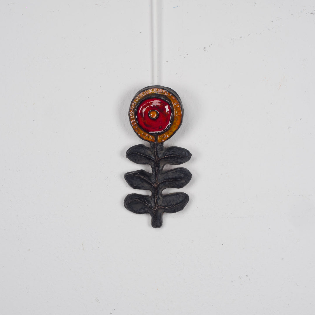 Vintage keramieken bloem – rood en oranje, stijl Perignem