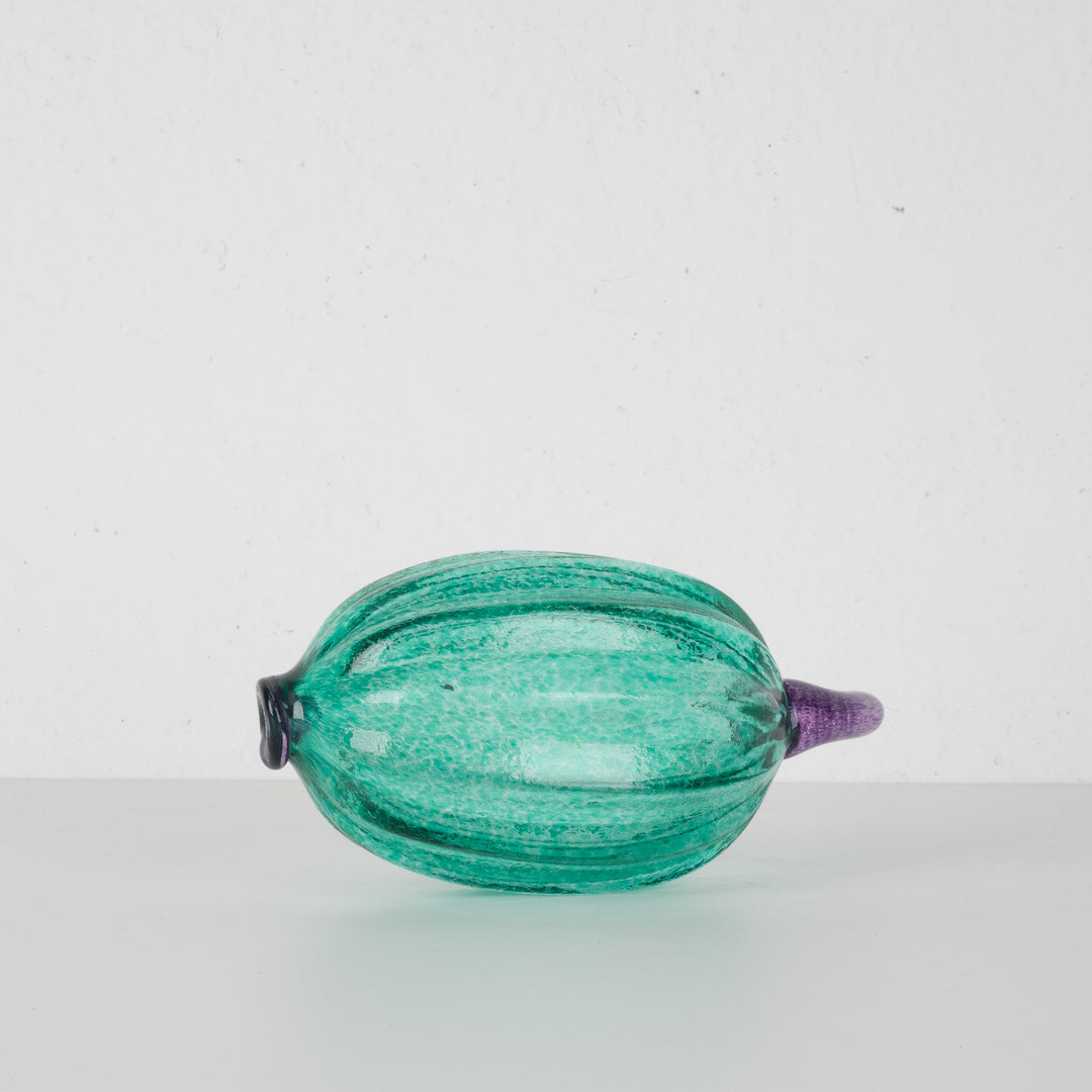 Mondgeblazen cilindrisch vaasje – appelblauwzeegroen met lijnmotief