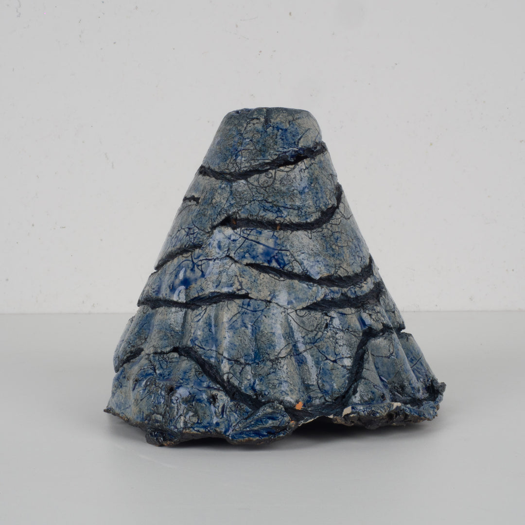 Handgemaakt keramisch object in blauw – Organisch sculpturaal stuk