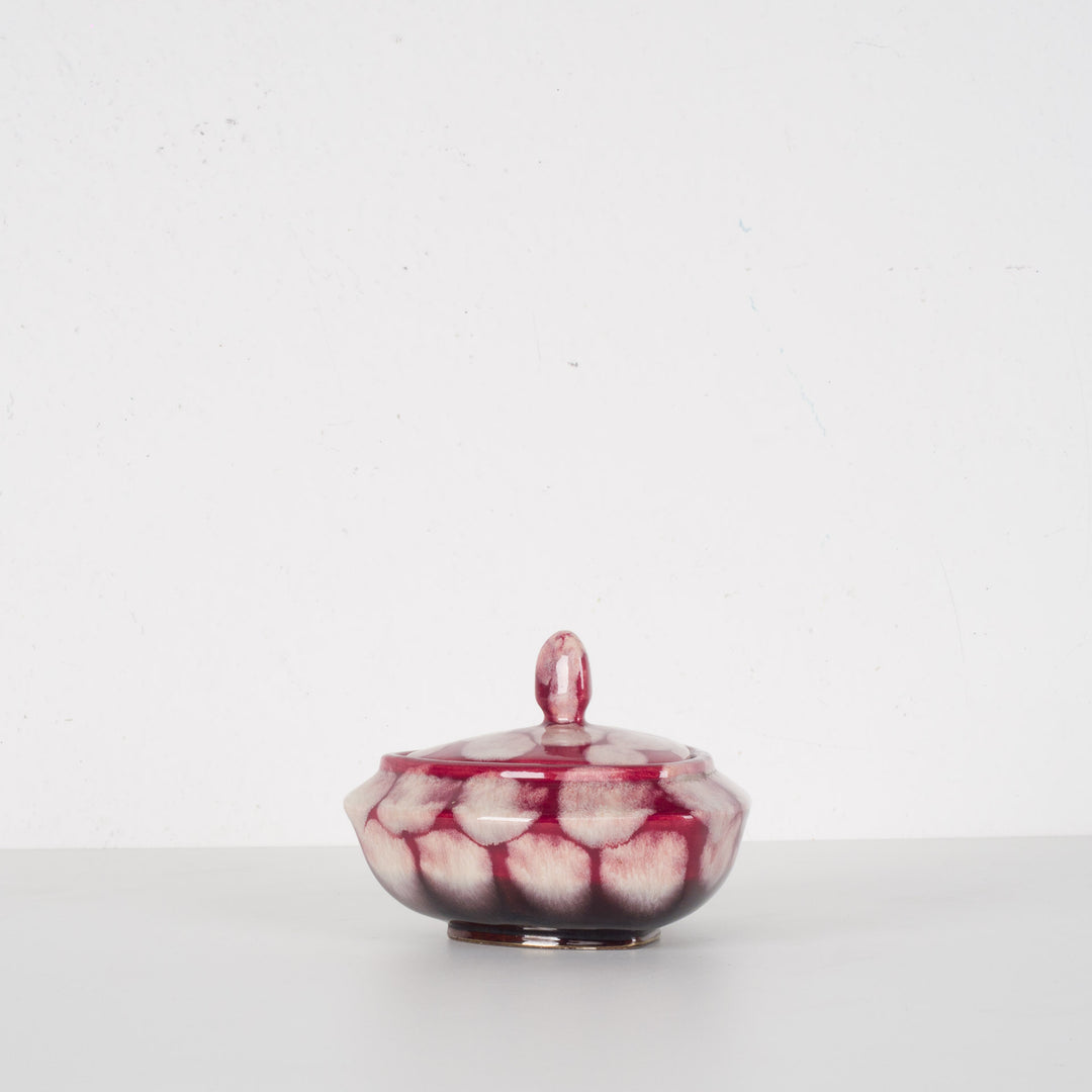 Vintage keramieken bloem – rood en oranje, stijl Perignem