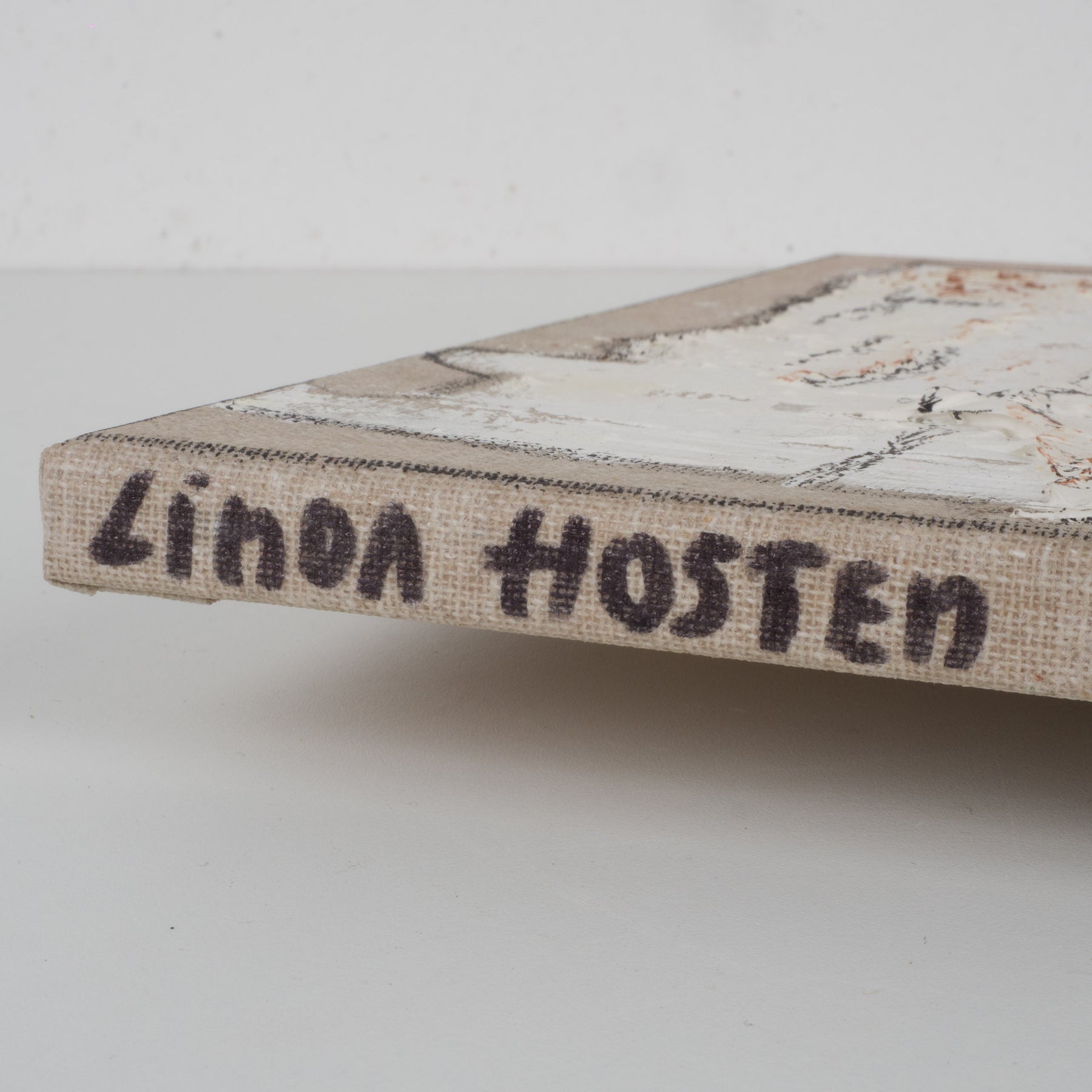 Ontdek dit karaktervolle schilderij van de Oostendse kunstenares Linda Hosten, een compact maar opvallend werk vol reliëf, warmte en subtiele kleurwerking. Het kunstwerk meet 25 × 25 × 2 cm en is gesigneerd door de kunstenares.