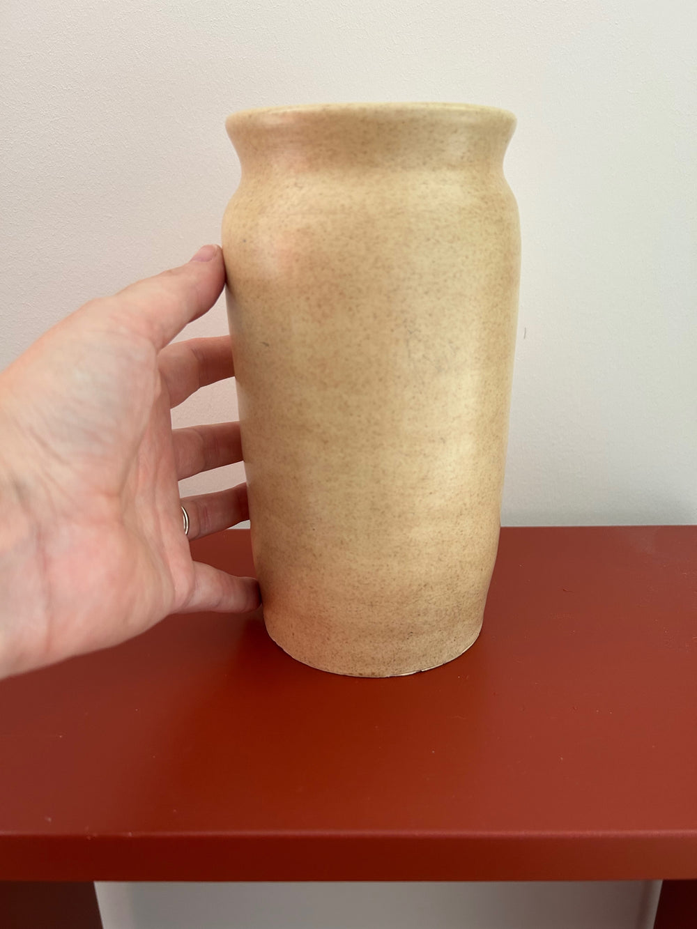 Stilte in Vorm – Beige handgemaakte Keramische Vaas (gesigneerd HM) - 19cm hoog