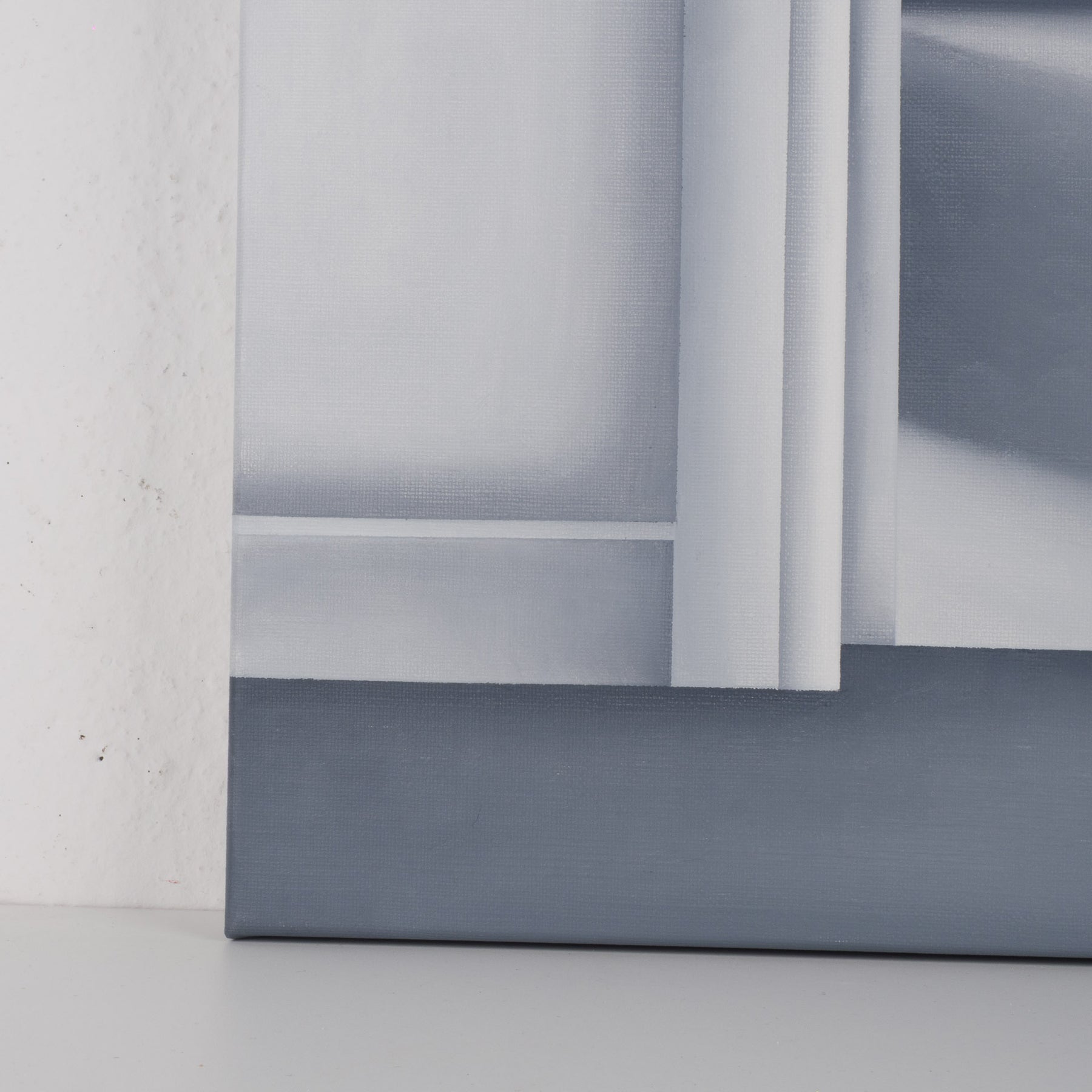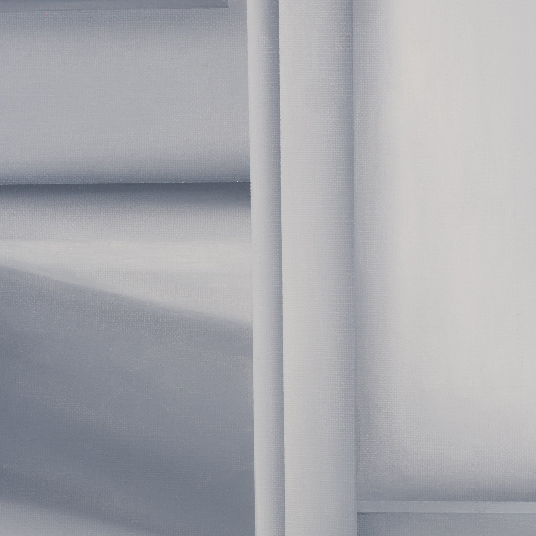 De zachte grijstinten en vloeiende overgangen geven het schilderij een bijna meditatieve kwaliteit. Alles lijkt zorgvuldig uitgebalanceerd: de lijnen zijn strak maar niet hard, de volumes duidelijk maar nooit dominant. Dit zorgt voor een gevoel van stilte dat niet leeg aanvoelt, maar juist uitnodigend en warm.