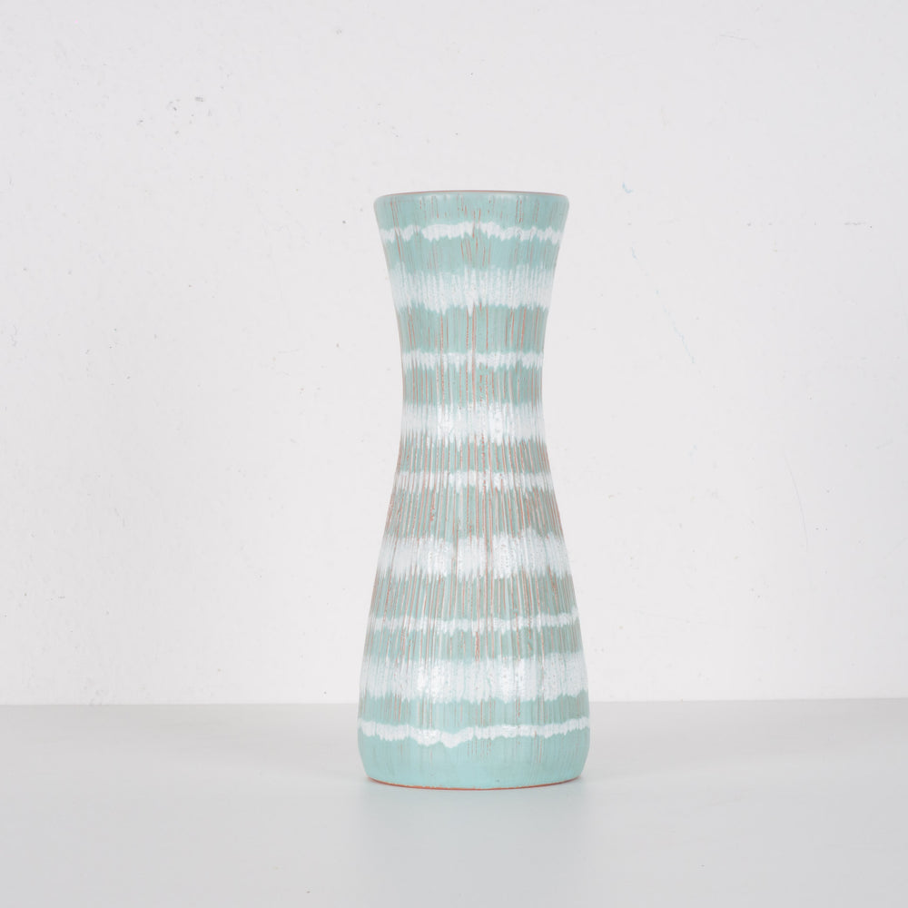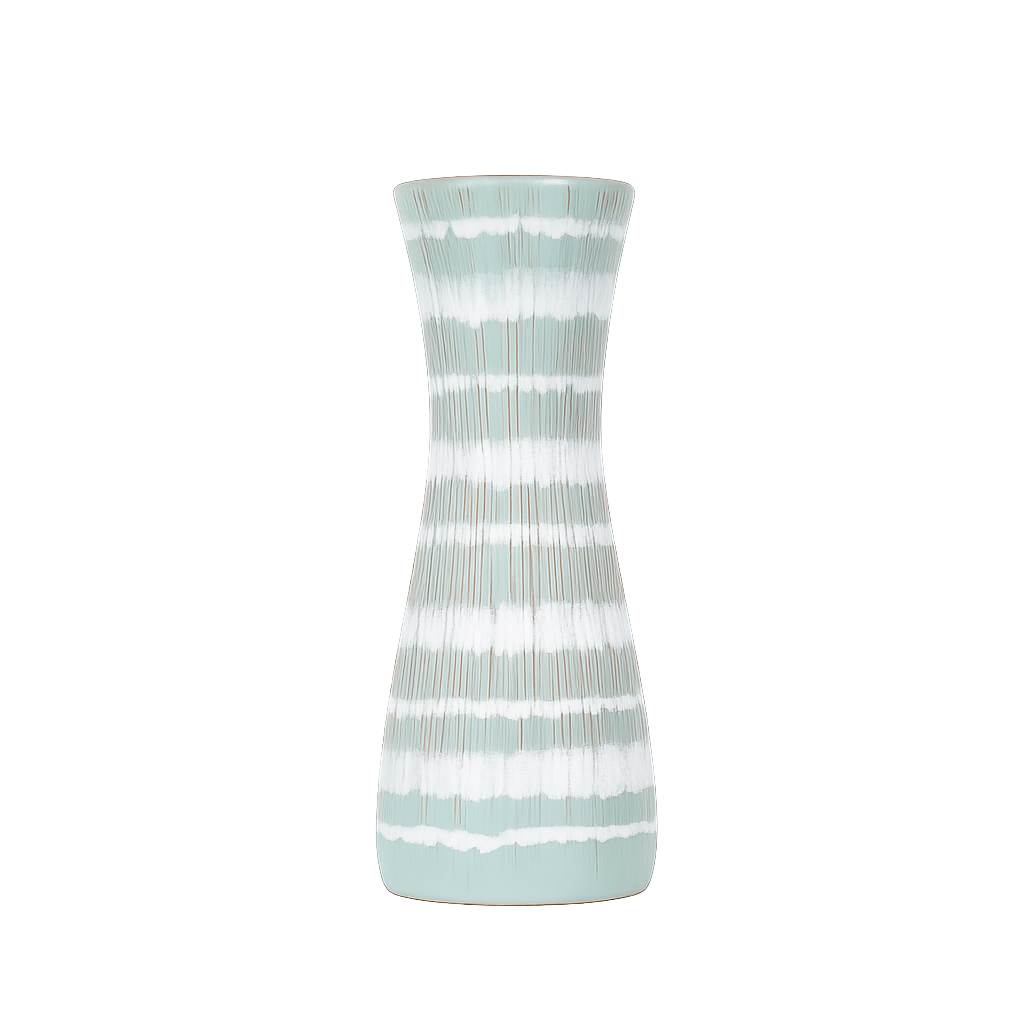 Vintage keramische vaas – lichtgroen met rode lijnstructuur