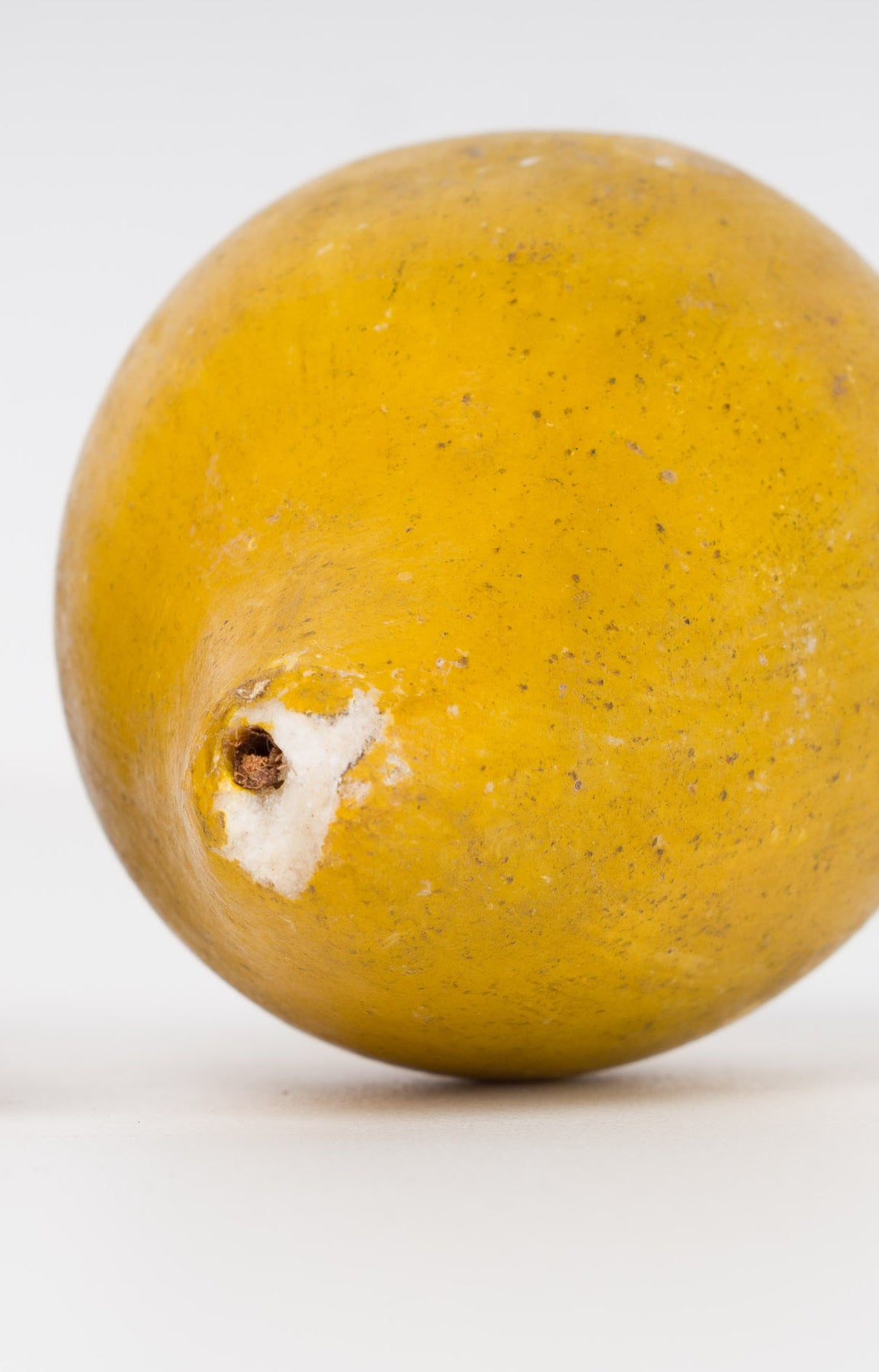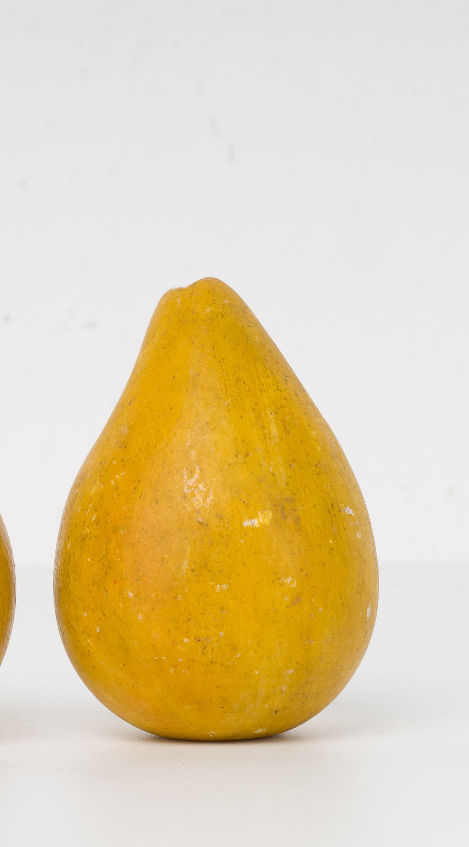 De warme gele tinten en subtiele nuances in het oppervlak geven deze stenen peer een natuurlijke uitstraling. De lichte gebruikssporen (zie foto’s) maken deel uit van haar verhaal en versterken net het unieke, doorleefde karakter van dit object. Dit doet niets af aan haar decoratieve waarde — integendeel, het geeft haar extra charme en authenticiteit.