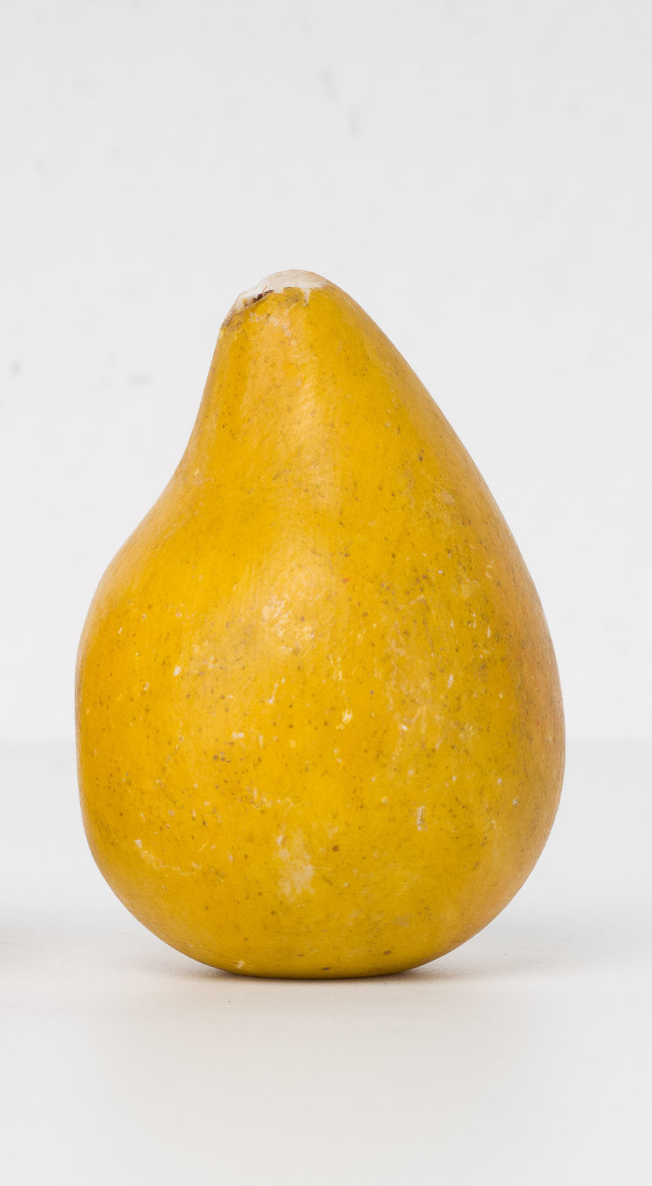 Deze charmante gele peer in steen is een klein maar karaktervol decoratief object met een verrassend solide gewicht. Met haar compacte afmetingen van 5 x 6 x 8 cm en een gewicht van maar liefst 300 gram voelt ze robuust en authentiek aan — een tastbaar bewijs van het massieve natuursteen waaruit ze vervaardigd is.