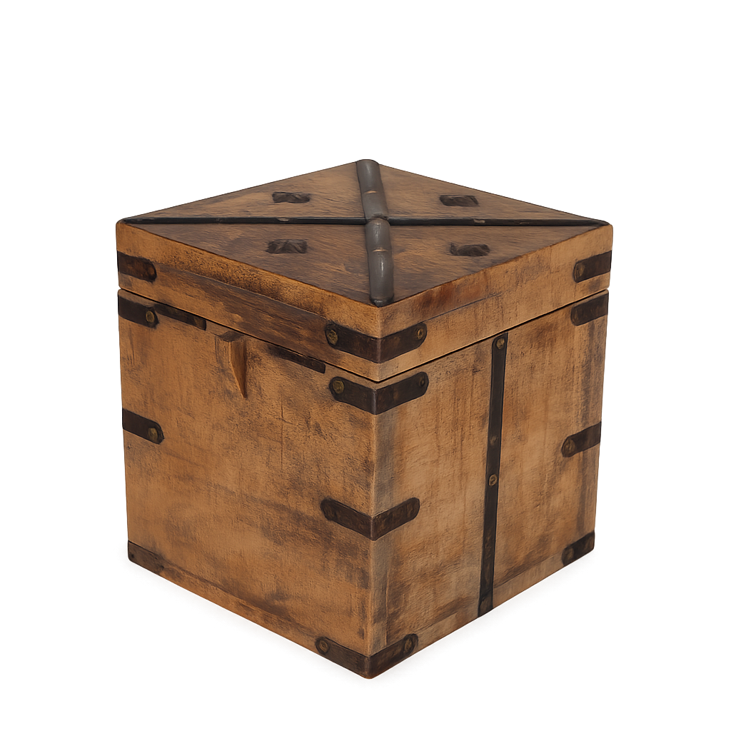 Een tijdloze houten kist met karakter – ideaal voor liefhebbers van natuurlijke materialen, koloniale accenten en authentieke interieurstukken.